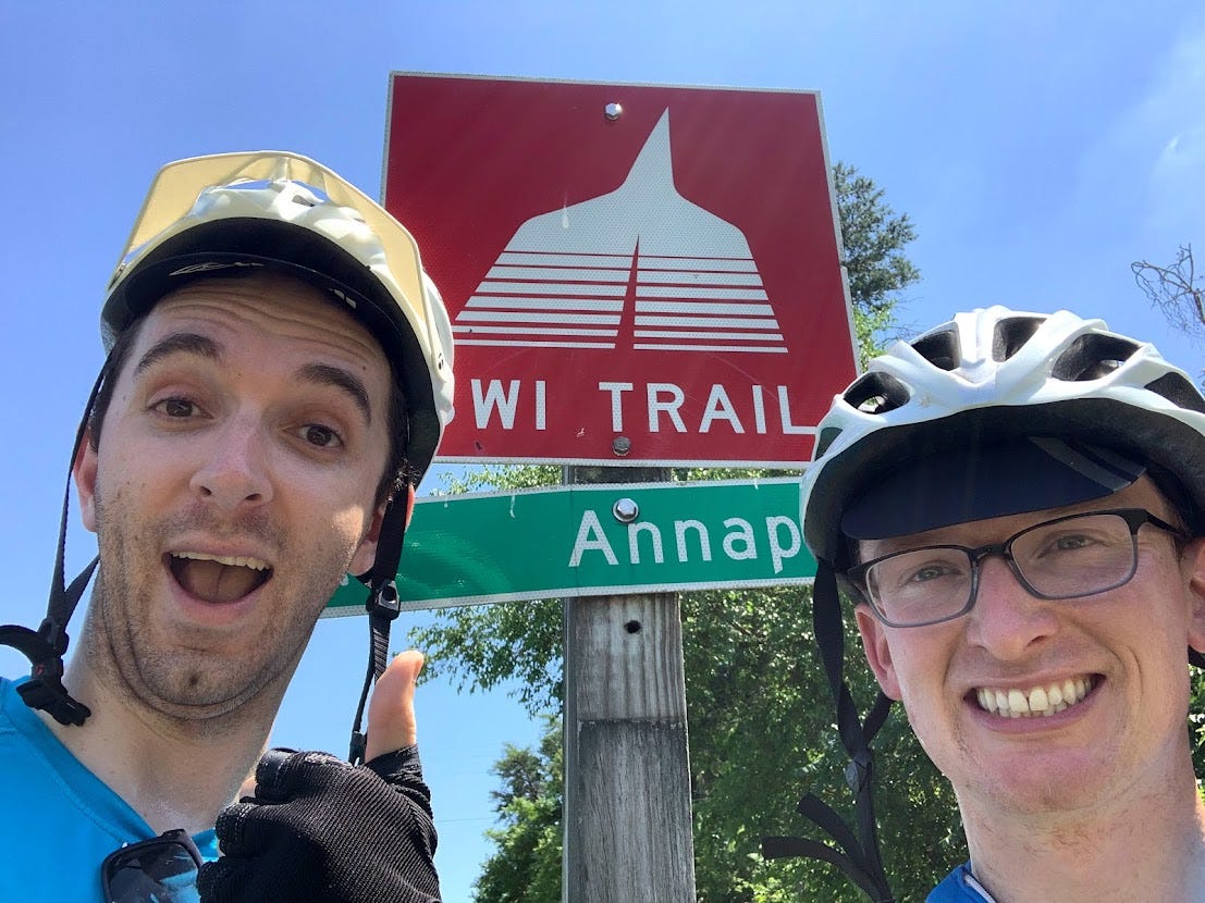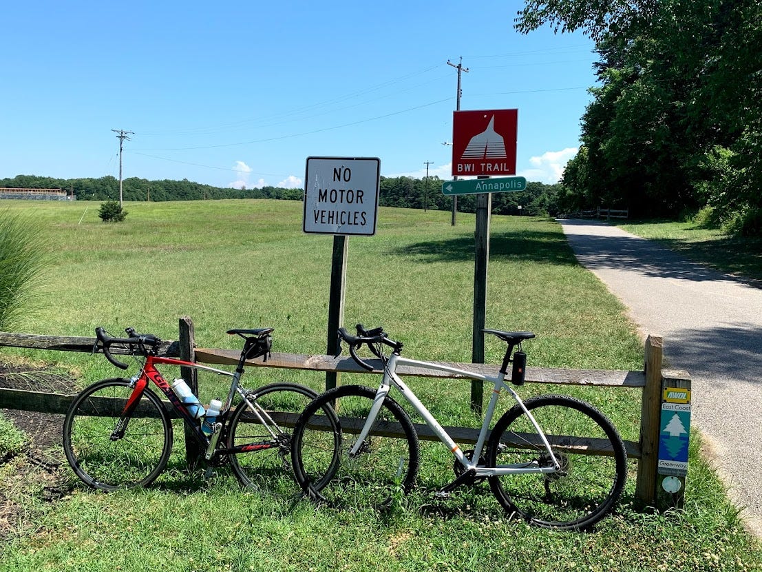 While the ride was toasty, it was (mostly) easy terrain. We started by heading over to the BWI trail, a 12-mile loop that wraps around Baltimore/Washington International Airport. From there, we picked up the B&A Trail, and it was a straight shot to Annapolis.