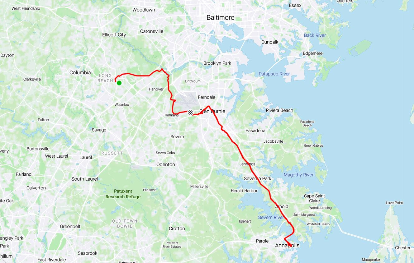 Whereas Michael’s knowledge of northern Virginia’s vast trail network was helpful to launch Ride #1, it was Alex’s turn to map out a route with which he was already very familiar. And why not try to link up two of Maryland’s premiere cities: Baltimore and Annapolis?