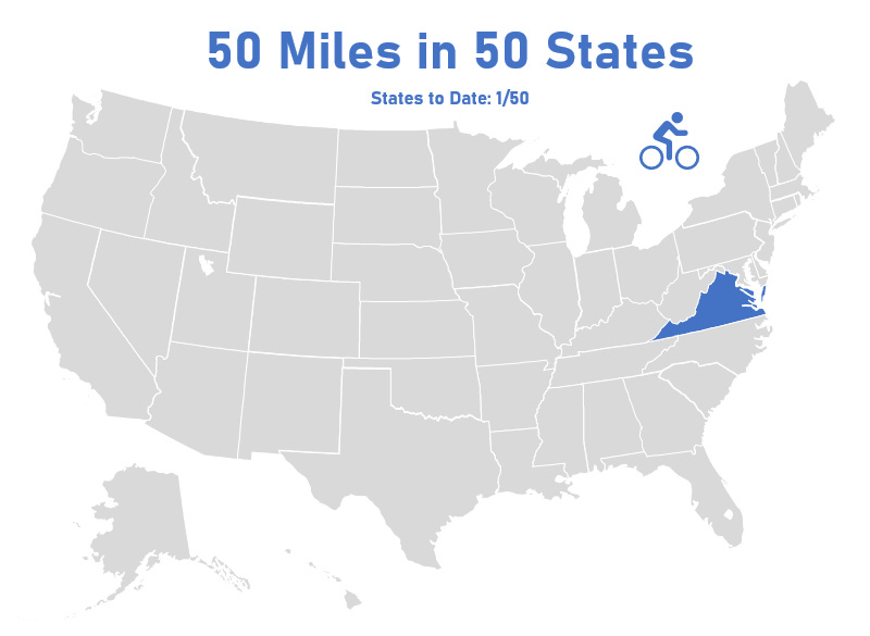 This prompted another idea: because DC was also so close to Maryland, we should also try to do a longer ride there—maybe one over 50 miles as well. And while we were at it, why not just make a plan to do it in all 50 states?